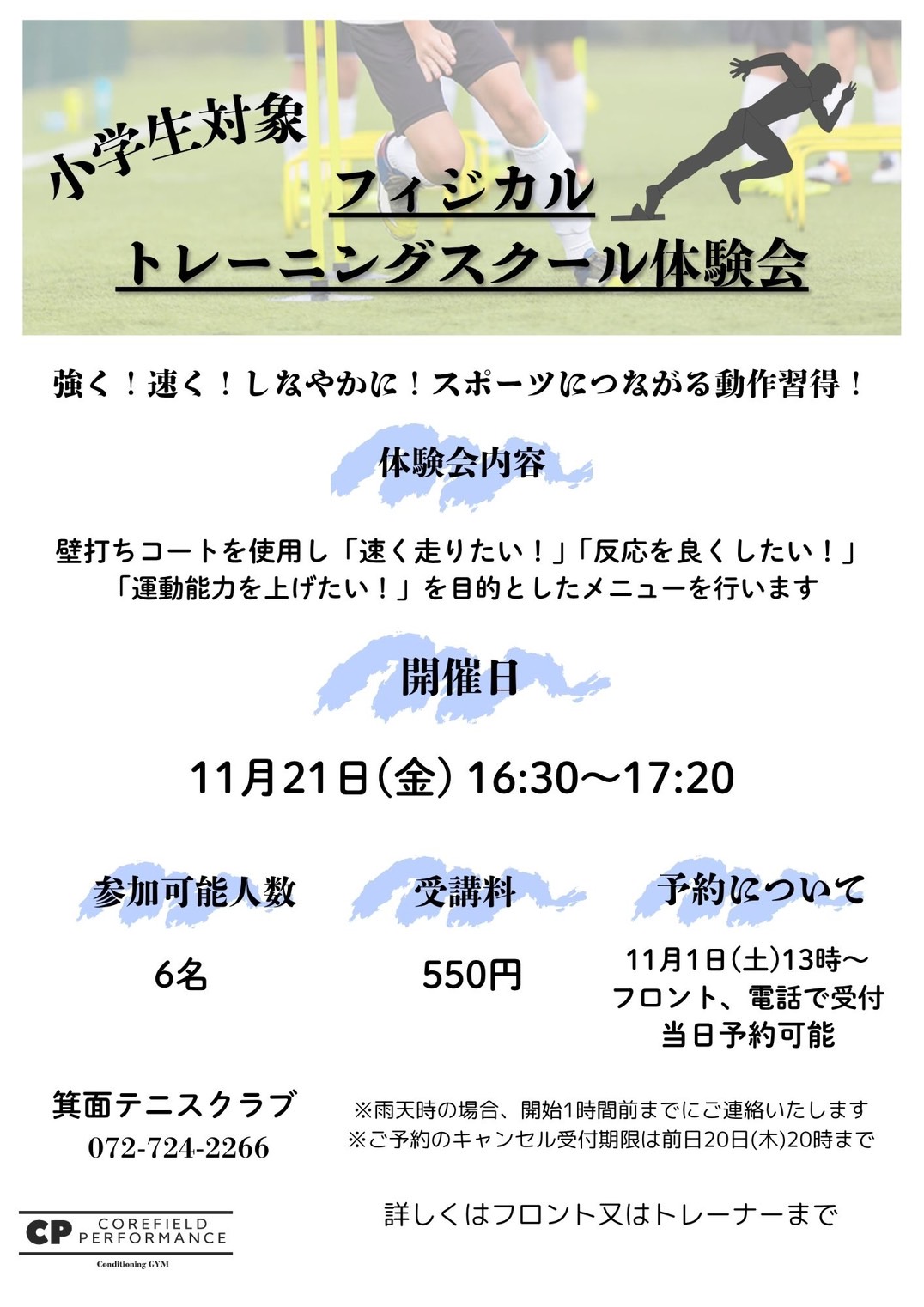 ジュニアアスリートフィジカルスクールを箕面店で開催することが決定いたしました!