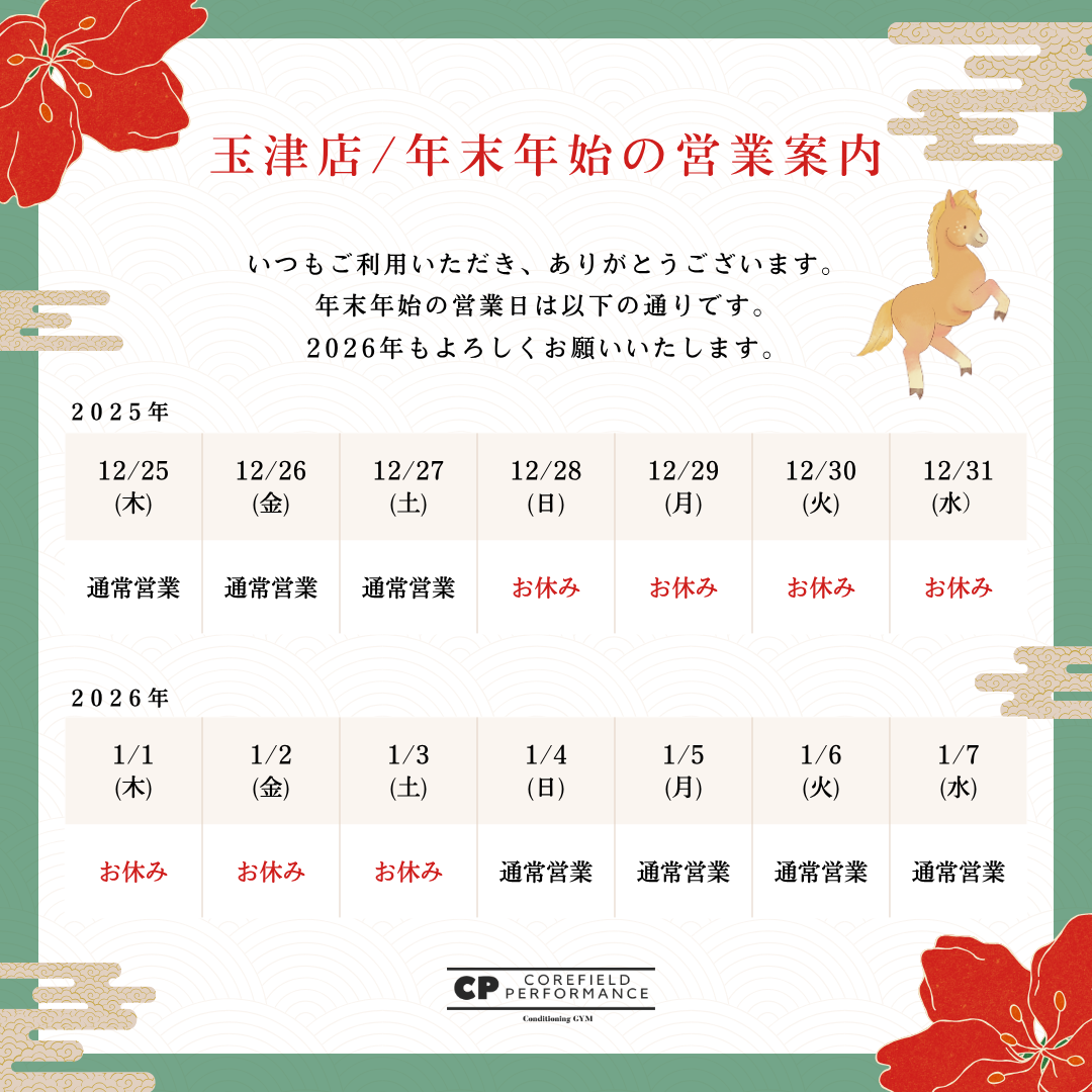 📅12月28日(日)〜1月3日(土)までお休みとなります。