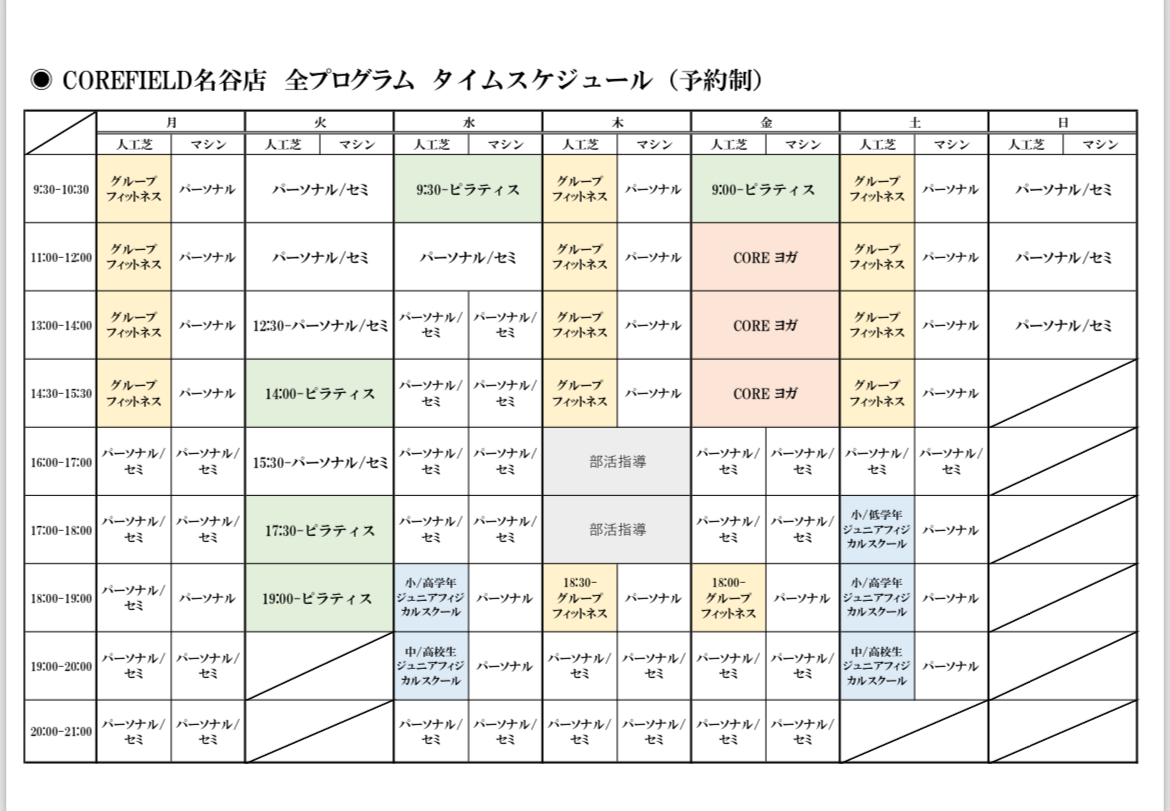 午前午後はピラティス・コアヨガ時間。